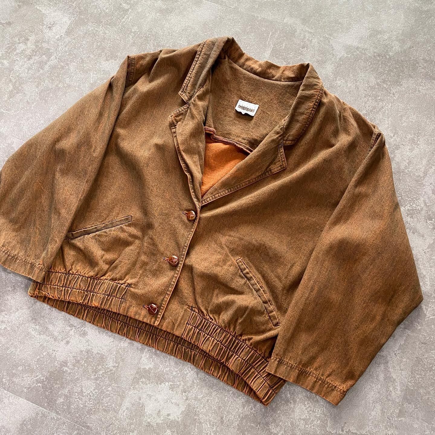 ジャケットライクなラペル、緩さの在る身幅に、カッティングはブルゾン仕様。