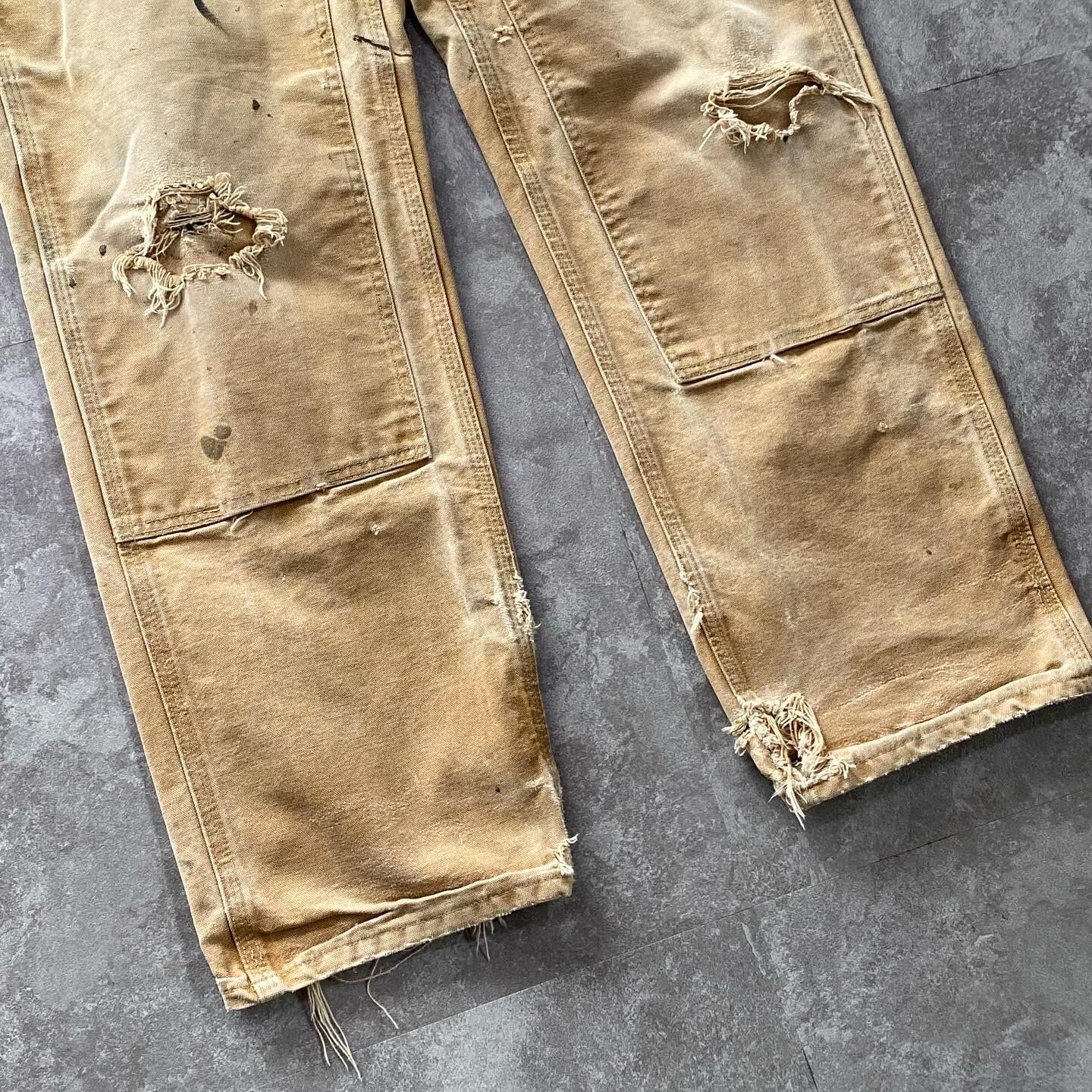 厚みのあるダック地に、ダブルニー仕様は定番だが、