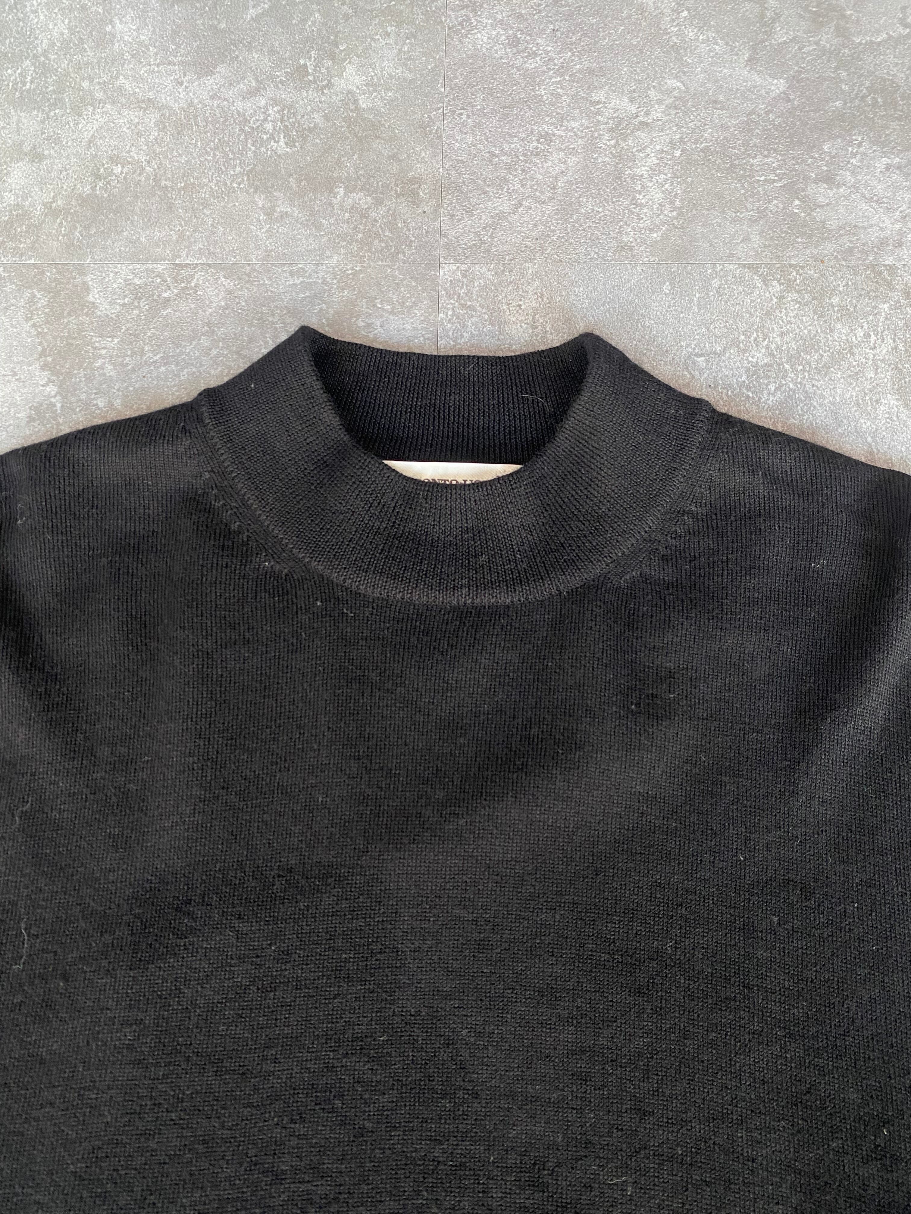 モックネックニットセーター。